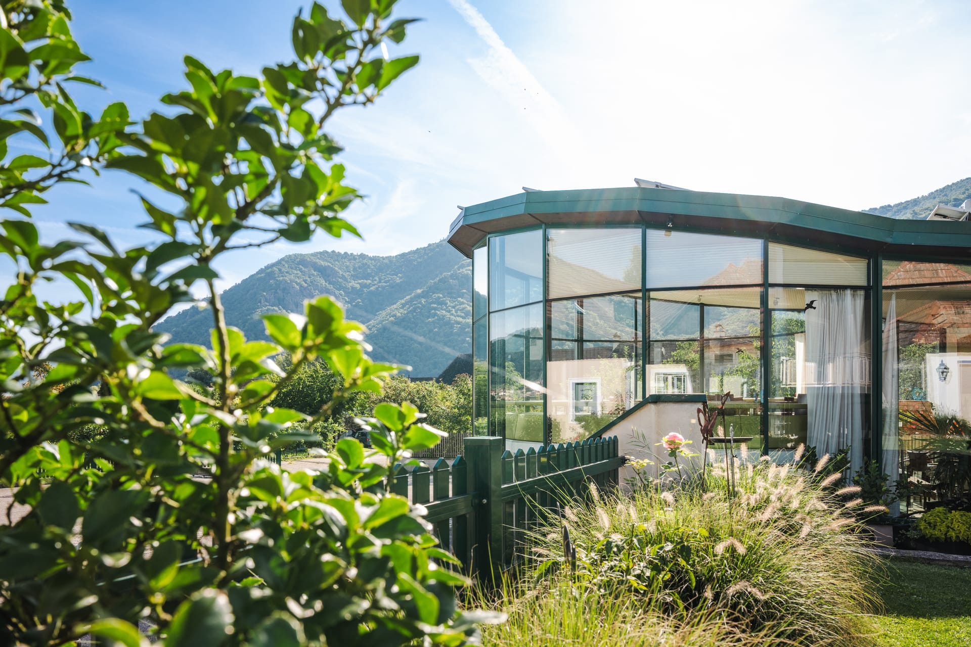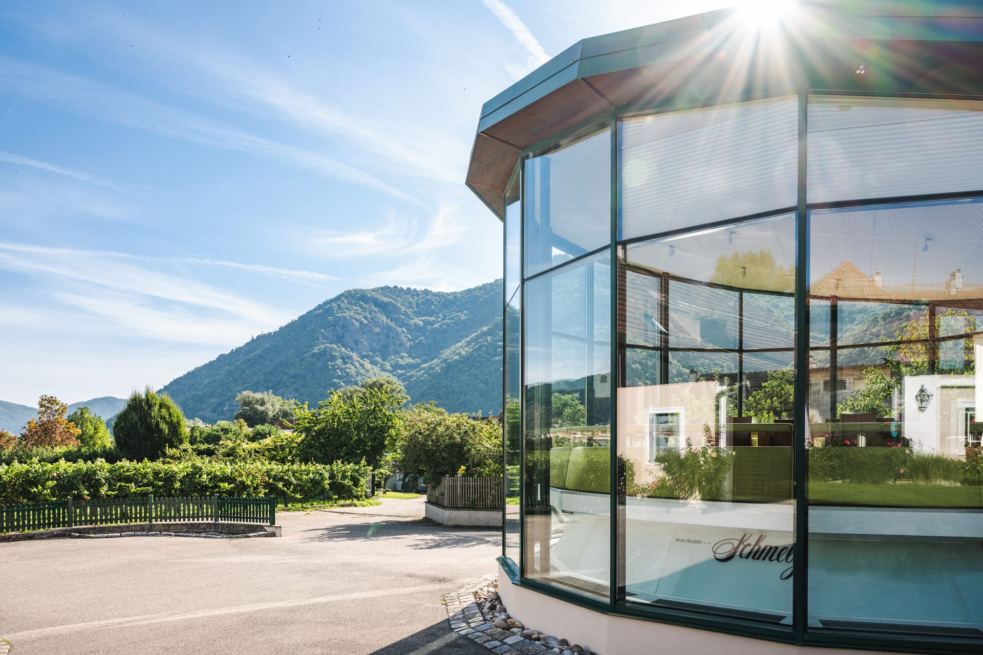 Mit dem Blick auf die Weinberge der Wachau können Sie unsere Weine im gemütlichen Ambiente verkosten.